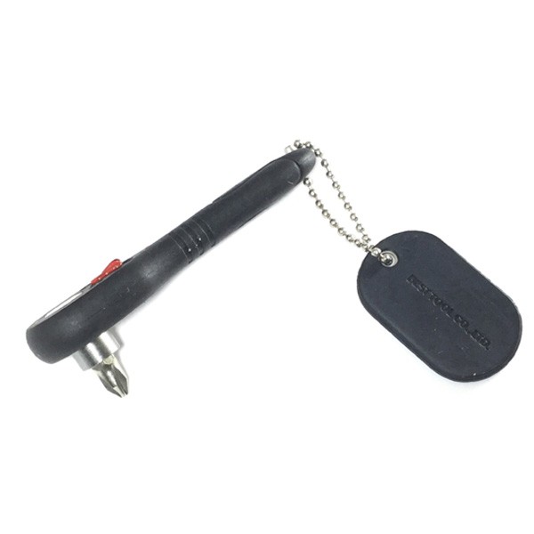 手が当たって回せない、狭いドライバーが入らない、そんな時に大変便利なコンパクトラチェットドライバー(ドッグタグ式のキーホルダー付)。本品はBD-2のミニサイズです。