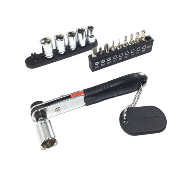 狭い箇所での作業にとても便利なコンパクトラチェットセットです(ドッグタグ式のキーホルダー付)。