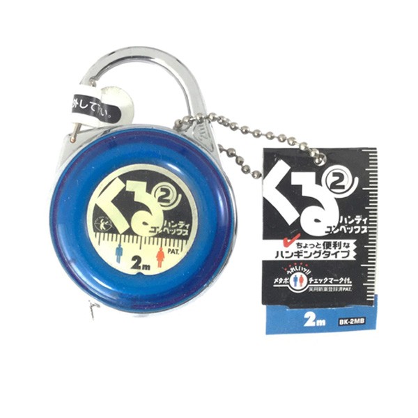 便利なハンギングタイプ。最長2mのコンパクトメジャーメタボチェックマーク(PAT)が目盛に付いているのが特長で、遊びご心のあるミニコンベックスとなっています。