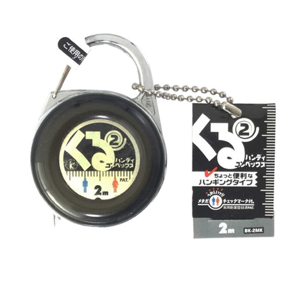 便利なハンギングタイプ。最長2mのコンパクトメジャーメタボチェックマーク(PAT)が目盛に付いているのが特長で、遊びご心のあるミニコンベックスとなっています。