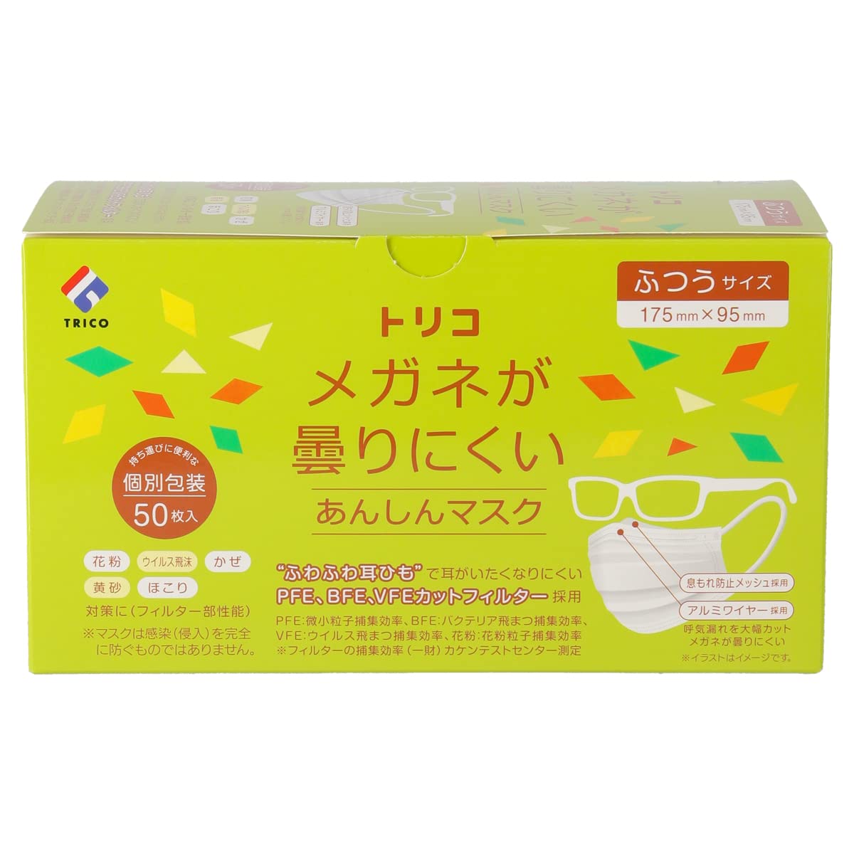 trico(トリコ) メガネが曇りにくいあんしんマスク 個包装 ふつう 50枚