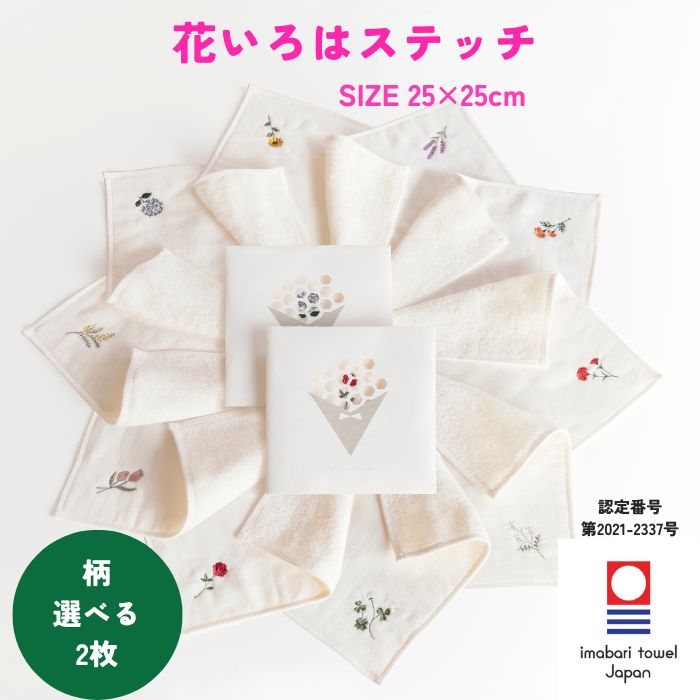 今治タオル ハンカチ 刺繍 25×25cm レディース 2枚 選べる 花いろは ステッチ ガーゼ 個包装 ギフト プレゼント まとめ買い 送料無料 退職 転勤 お礼