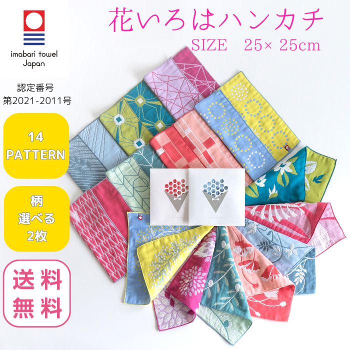 今治タオル ハンカチ レディース 25×25cm 2枚 選べる 花いろは ガーゼ 個包装 ギフト プチギフト プレゼント まとめ買い 送料無料 退職 転勤 お礼 お祝い