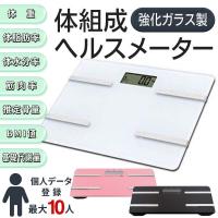 デジタルヘルスメーター 体脂肪計 体重計 強化ガラス製 体重/筋肉率/水分量/基礎代謝/BMI/推定骨量 個人データ10人分登録 薄型 健康 //60N◇ 体組成計CSC161