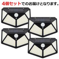 LED センサーライト 屋外 4個セット 人感センサー 100LED 太陽光発電 簡単に取付 ソーラー 玄関灯 駐車場 ガーデン 送料無料- 60N◇ 100LEDライト×4個