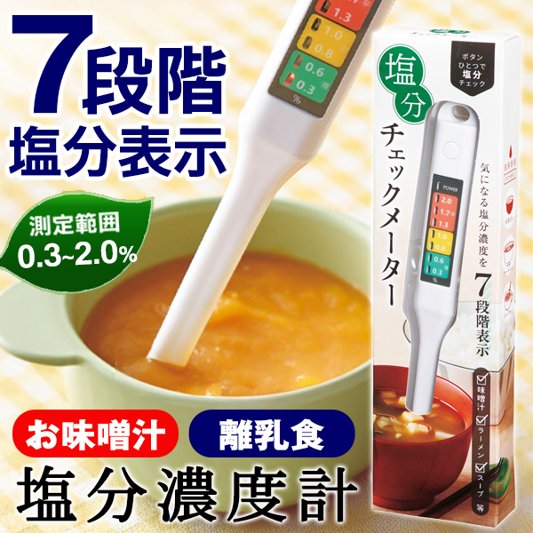 【3/13ポイント10倍】自分で管理 塩分計 減塩 みそ汁 7段階表示 離乳食 塩分チェッカー 塩分濃度計 塩分濃度 ◆送料無料 100K◇ NEW塩分チェックメーター