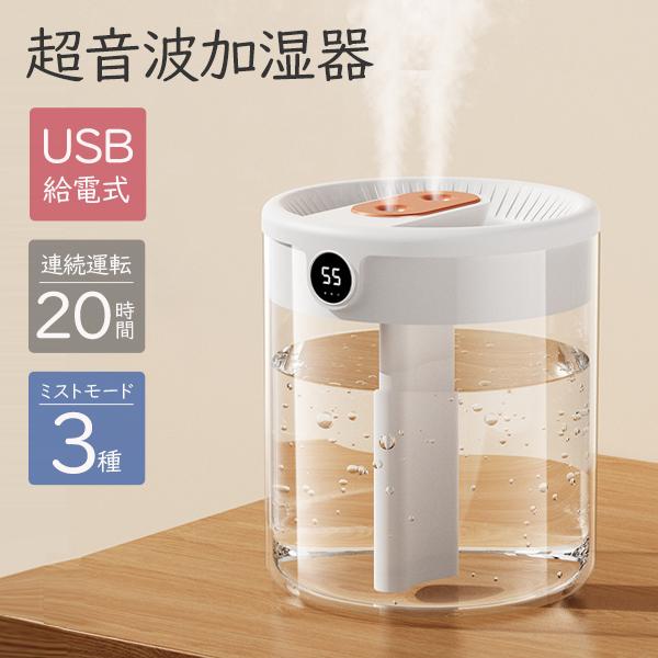 W加湿 加湿器 超音波加湿器 おしゃれ 卓上加湿器 湿度センサー 強力 ミスト穴×2個 加湿量3段階 20時間連続運転 ライト付 透明 送料無料- 60N◇ クリア加湿器