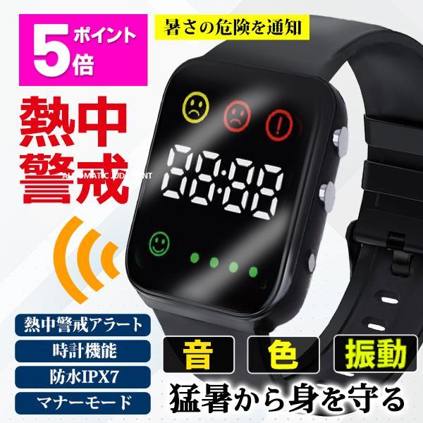 【ポイント5倍】熱中症対策 ウォッチ グッズ 温度計付き 農作業 高齢者 防水 熱中指数 腕時計 警戒アラート 子供 アラーム 送料無料 5M◇ 暑さ対策ウォッチ