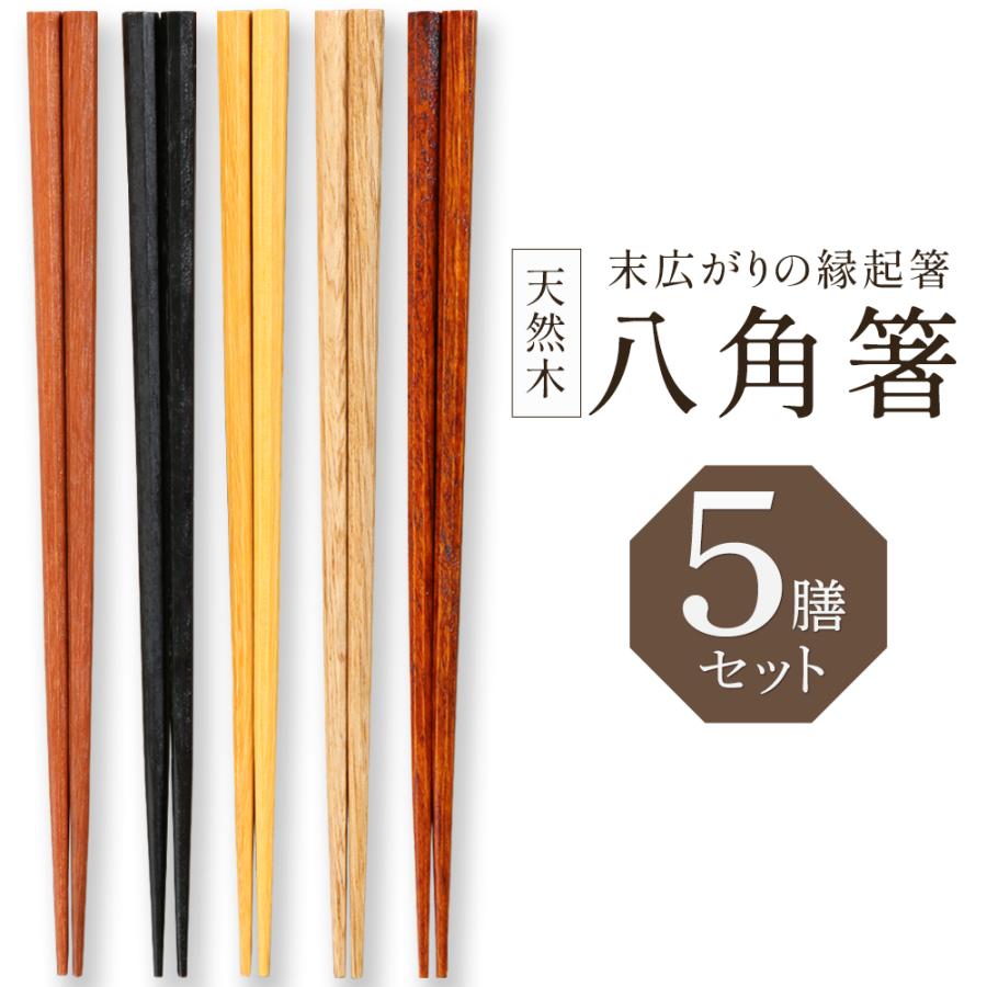 八角箸 5膳セット 縁起箸 和 箸セット 22.5cm 自分用 家族 来客用 大人用 子供 ナチュラル 八角 お箸 末広がり縁起物 天然木 居酒屋 /60N◇ 八角箸