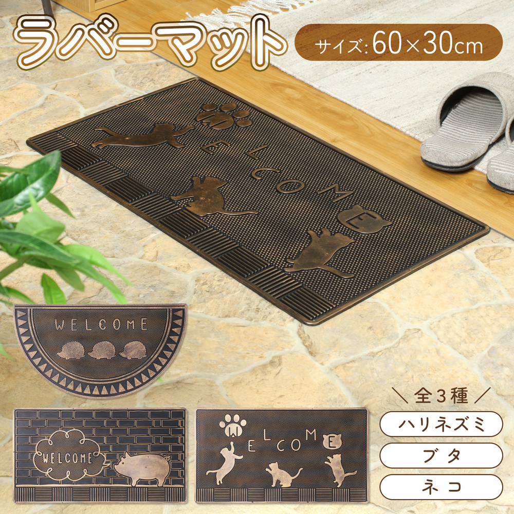 玄関マット 屋外 ラバーマット ドアマット 滑り止め ブタ ハリネズミ ネコ 猫 泥落とし 屋内 屋外 大判 60cm 家庭用 業務用 送料無料- 80S◇ ラバーマット