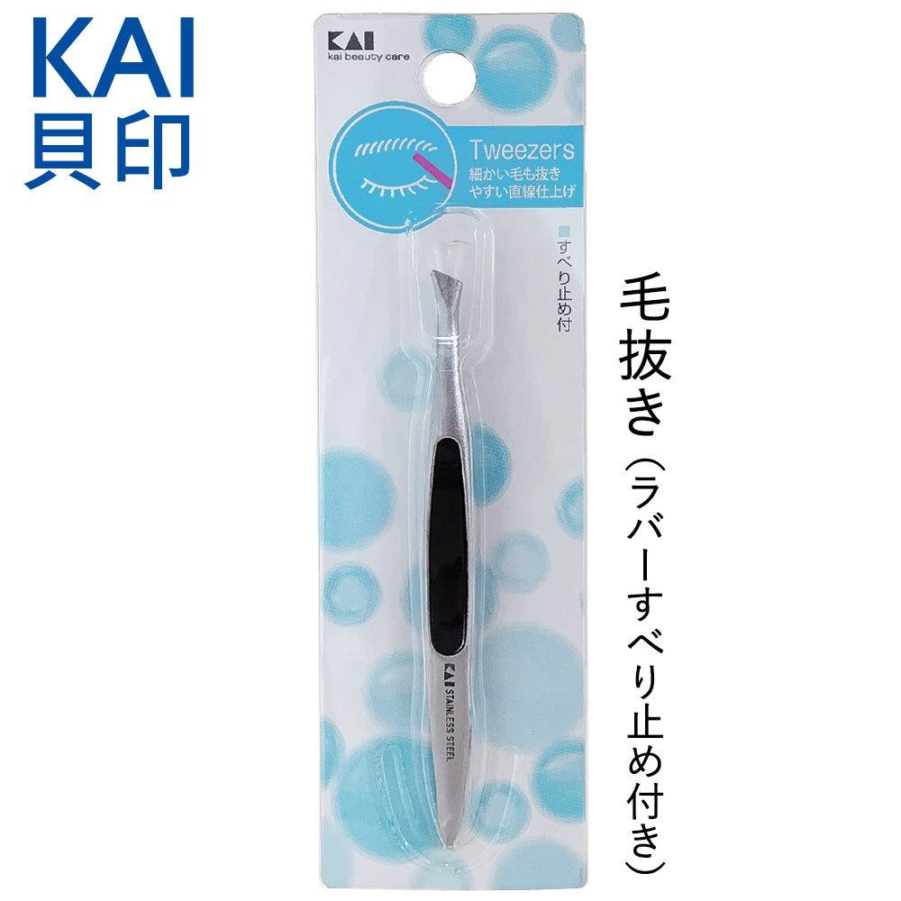 貝印 毛抜き 抗菌 KAI HL-0405 使いやすい ラバーすべり止め付き 毛ぬき 眉 眉毛 鼻毛 ステンレス製 ピンセット 送料無料 50K◇ SS毛抜き