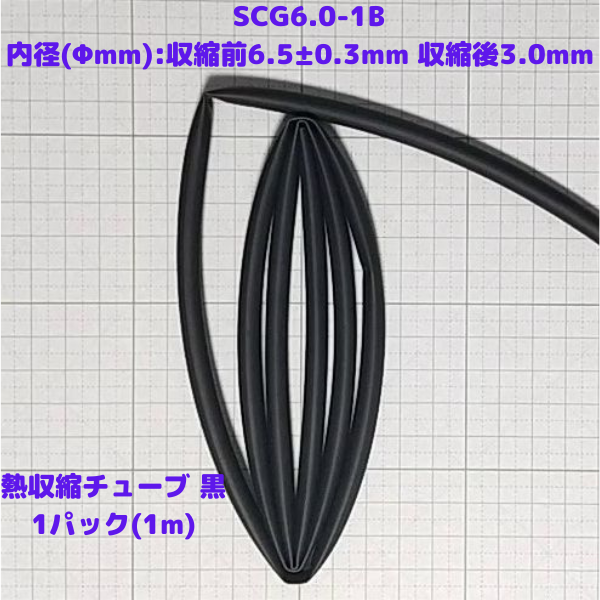 熱収縮チューブ 黒 SCG6.0-1B 内径(Φmm): 収縮前6.5±0.3mm 収縮後3.0mm 1パック(1m)