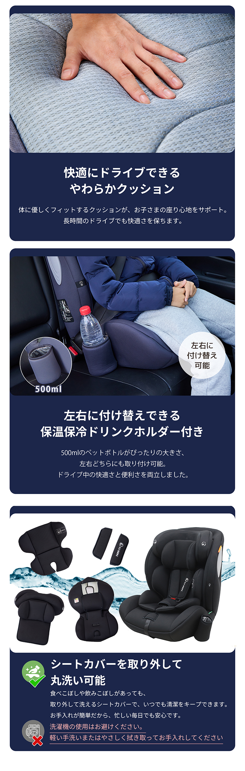 ・シートカバーは取り外して洗濯が可能