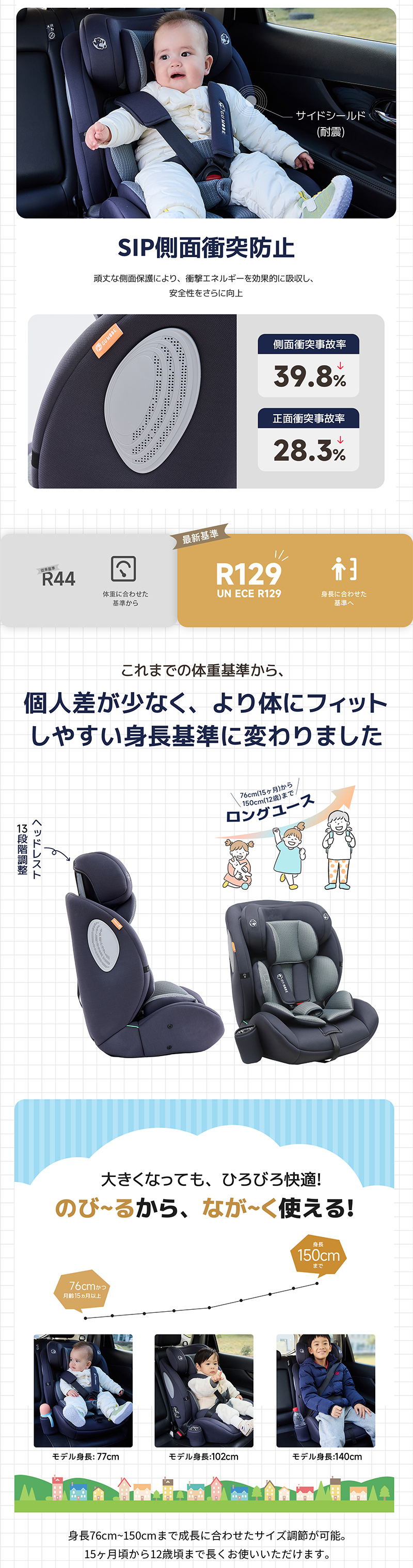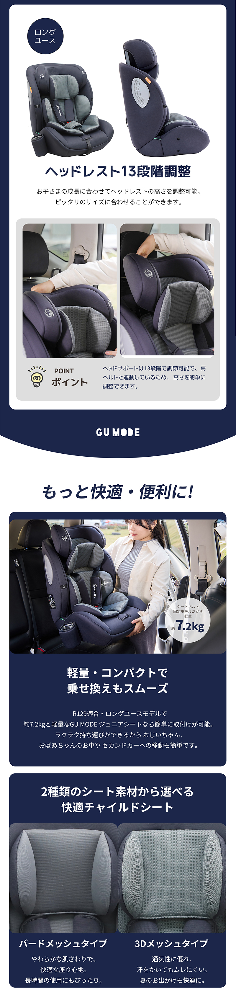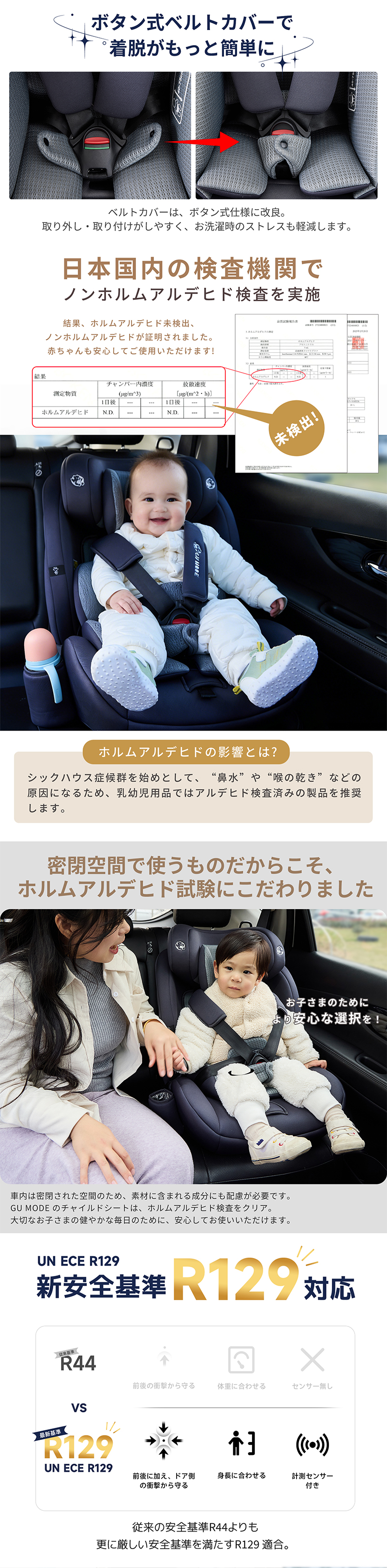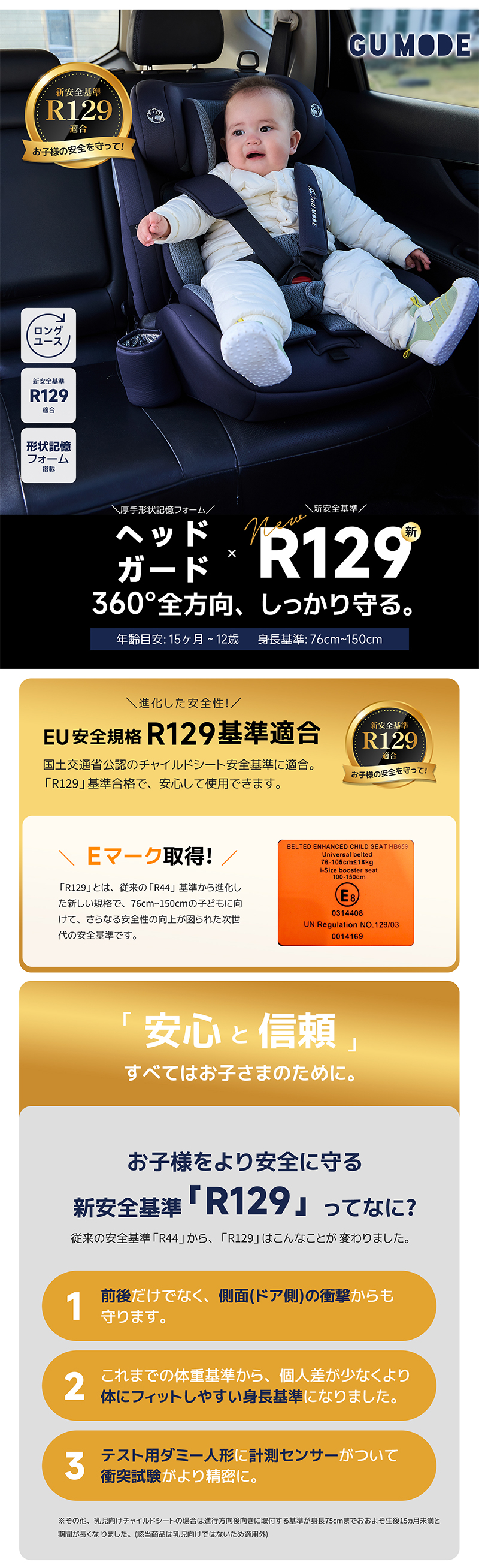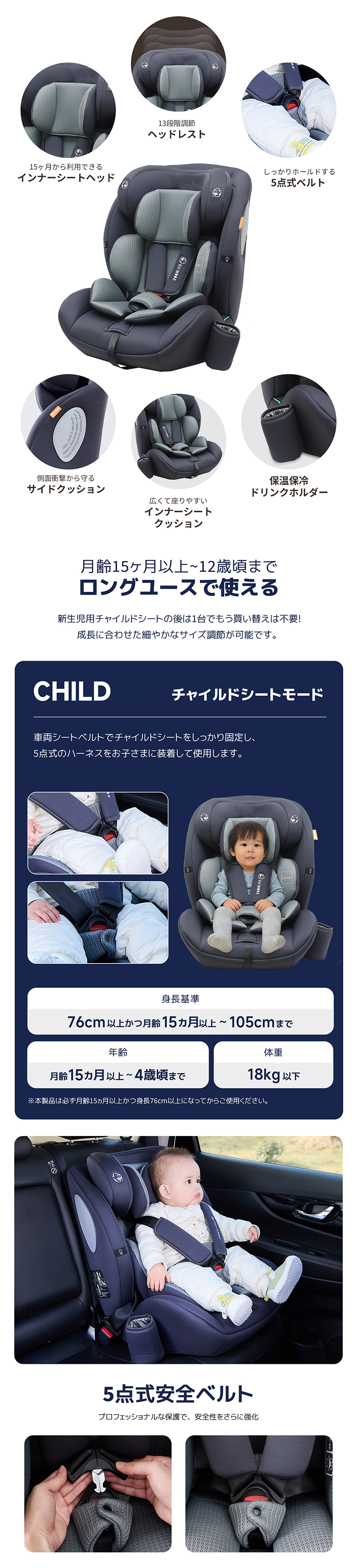 チャイルドシート R129適合 5年保証 ジュニアシート ドリンクホルダー付き 15ヶ月 小学生まで メモリーフォーム 衝撃 13段階ヘッド ロングユース GUMODE 爆買