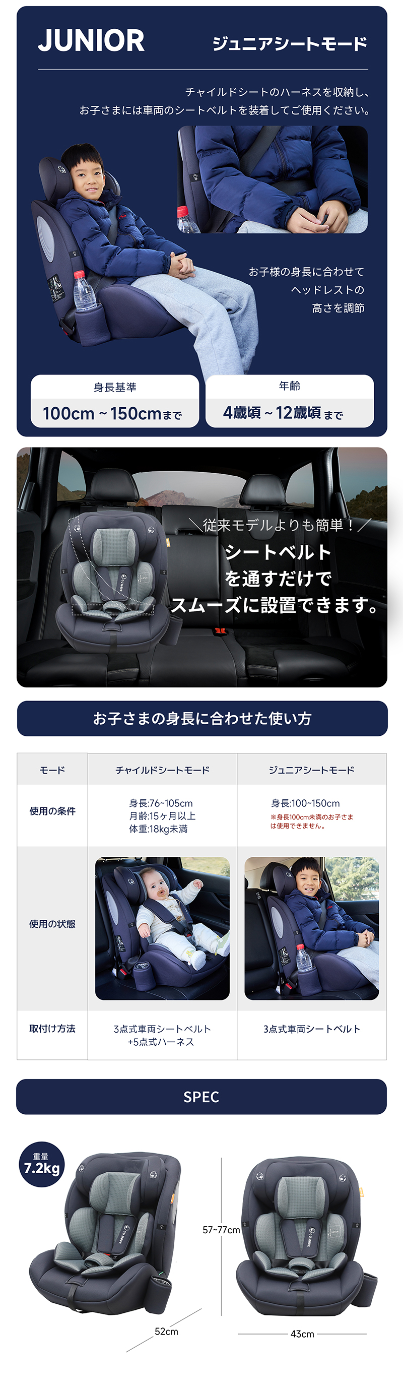 ・対応身長76cm〜150cmまで