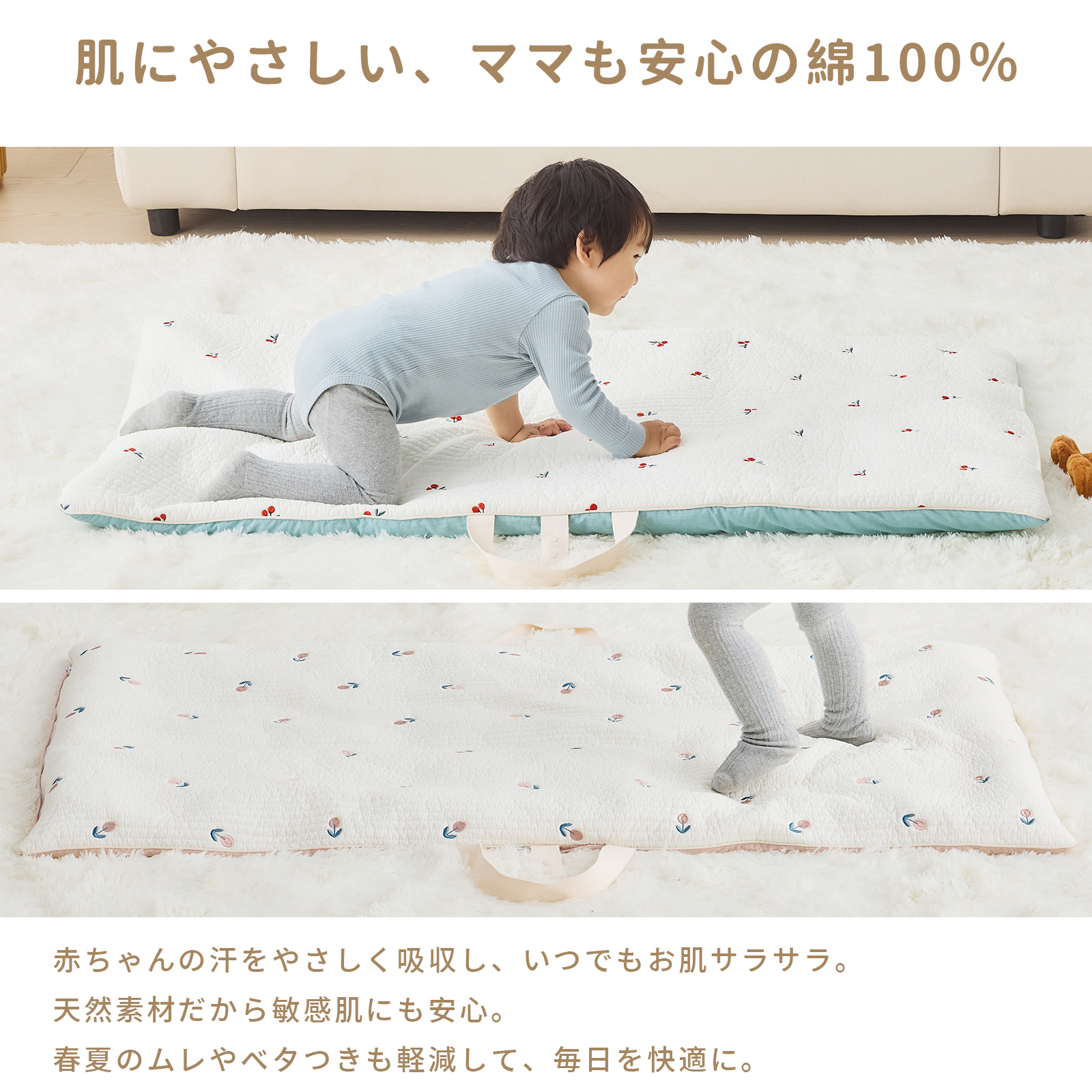 赤ちゃんの繊細な肌にやさしい天然素材を使用。