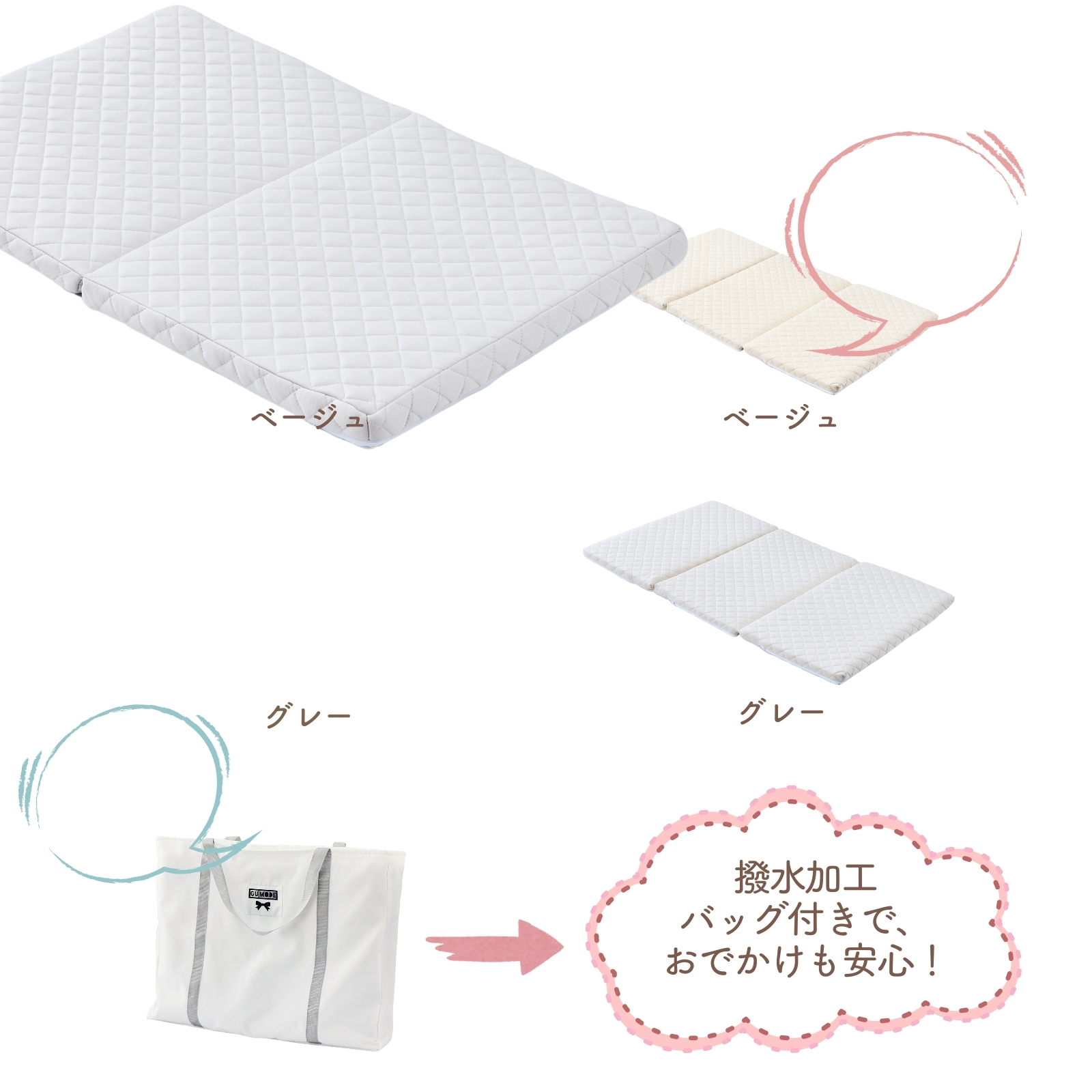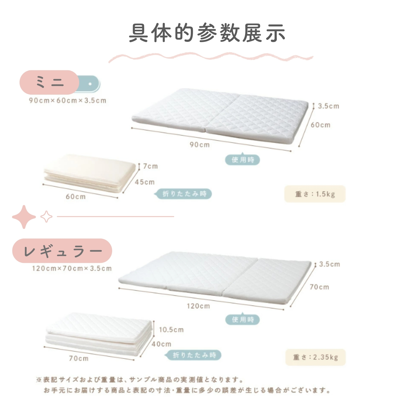 GU MODE 【国内検査済】ベビーマットレス 洗える 折りたたみ 2つ折り/3つ折り リバーシブル 冷感×コットン調 収納袋付き カバー洗濯OK 中材シャワー洗いOK