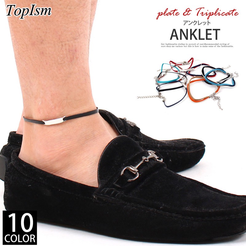 アンクレット メンズ レディース アクセサリー シンプル 3連 プレート 紐 ひも ヒモ おしゃれ メンズファッション小物