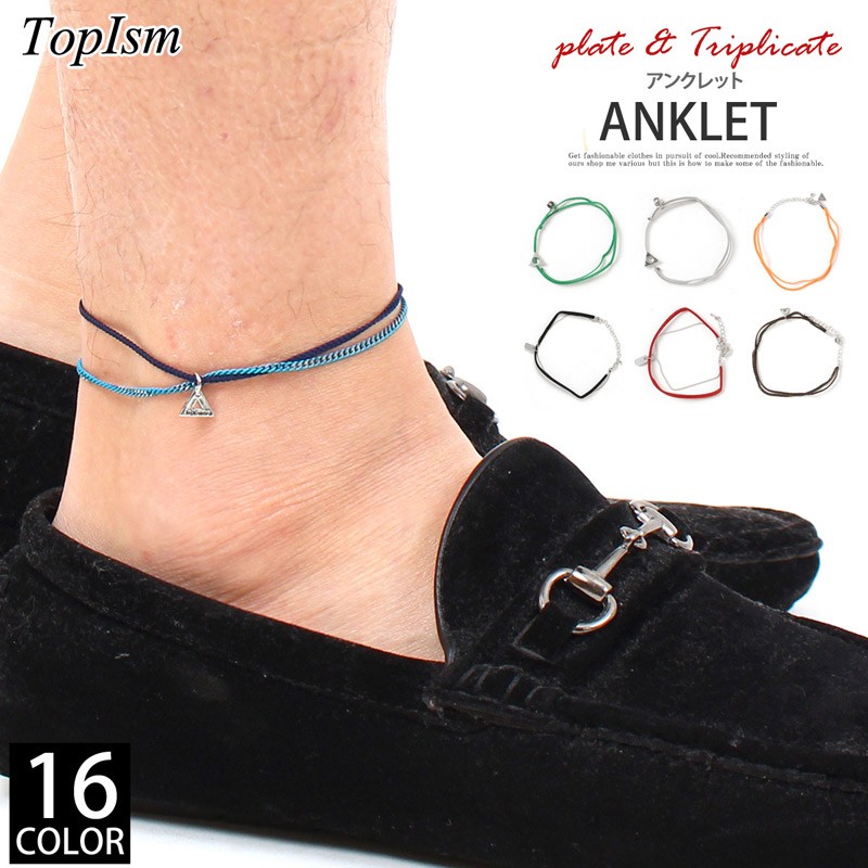 アンクレット メンズ レディース アクセサリー シンプル トライアングル プレート 紐 ひも ヒモ チェーン メンズファッション小物