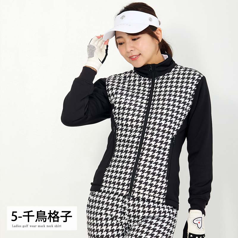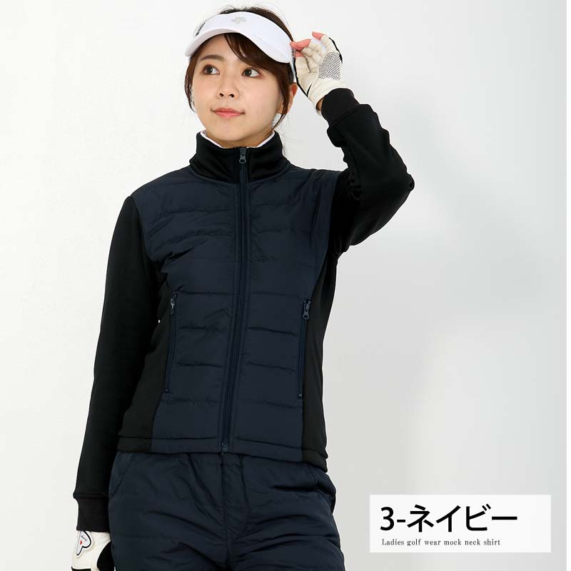 ジャージ素材を切り替えたレディースゴルフジャケット。