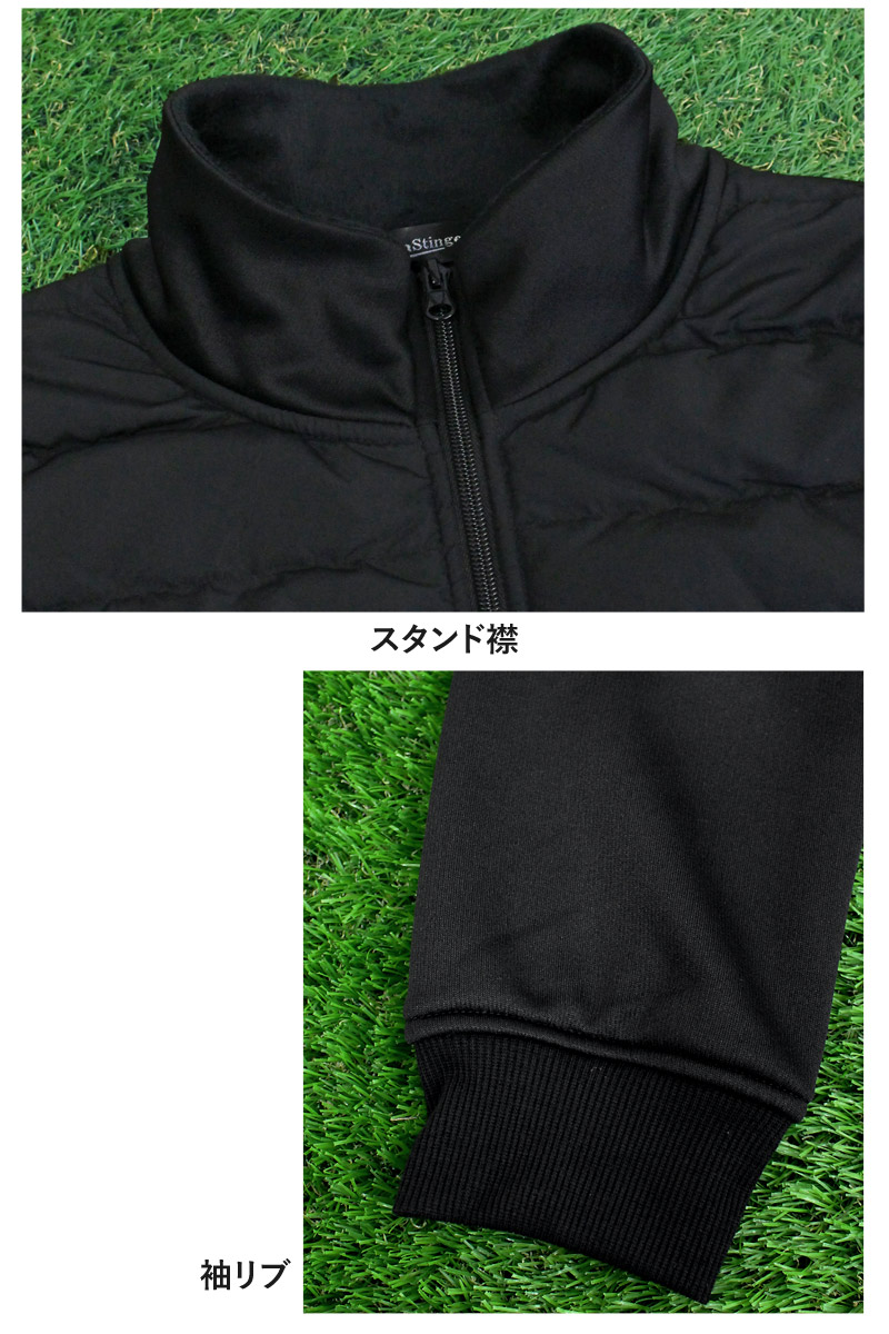 スタンドネックダウンジャケットの袖と襟、後身頃に