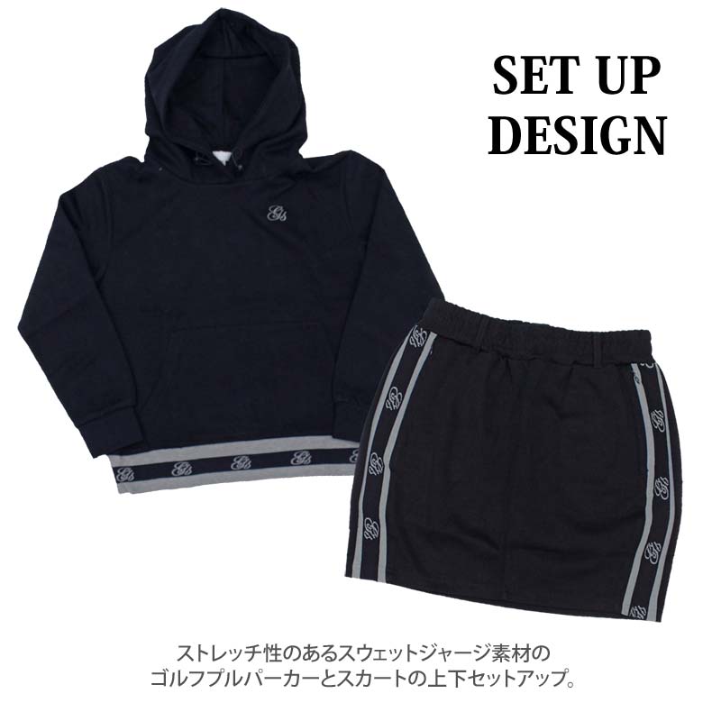 ゴルフウェア レディース 上下セットアップ gs GOLF スウェットジャージ フーディーパーカー スカート リブロゴ おしゃれ 秋冬 春夏 ブランド