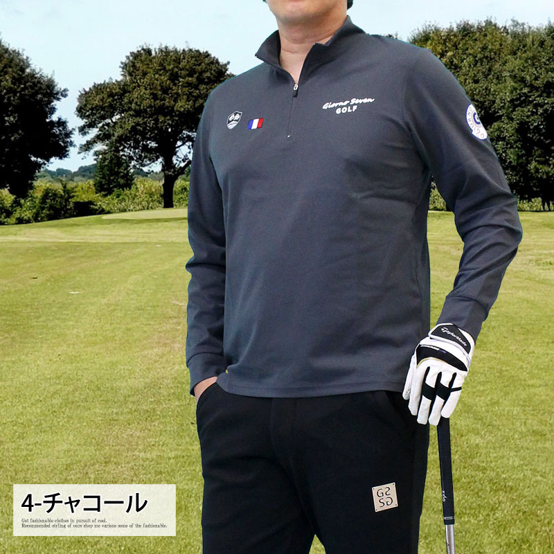ゴルフウェア メンズ ハーフジップ モックネック GIORNO SEVEN ジョルノセブン ハイネック トップス 長袖 ポロシャツ 春夏 秋冬 プリント