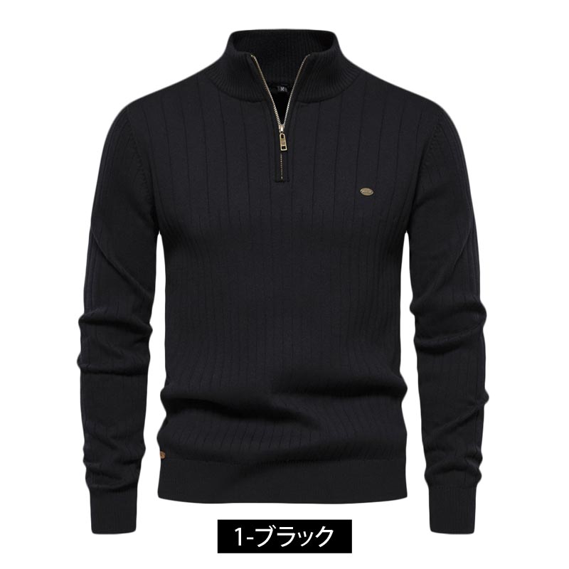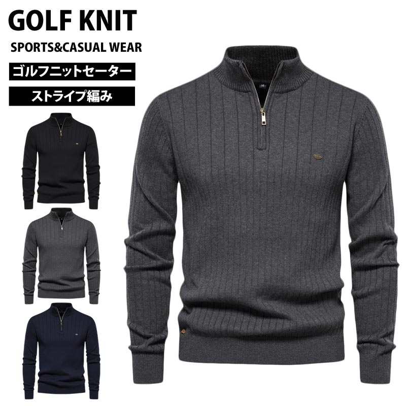 ゴルフウェア メンズ ニットセーター ハーフジップ 編地 編み目 無地 長袖 タートル ハイネック トップス おしゃれ 秋冬