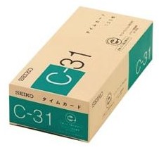 セイコー タイムカード 100枚入/箱 C31カード (月末締め日用) (両面・6欄) ●適合機種 QR-330,QR-350,QR-550,QR-900ほか 古紙パルプを利用した環境にやさしいタイムカードです。
