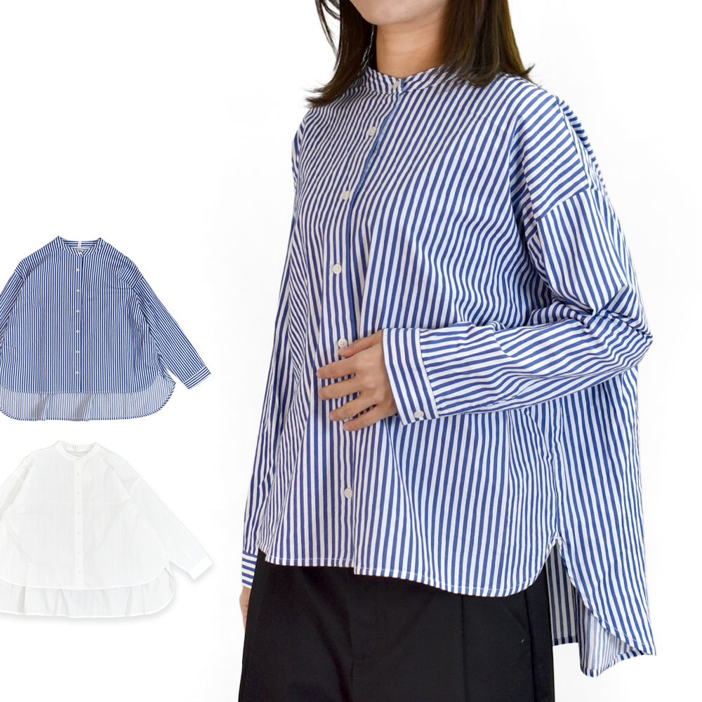 ブリスバンチ Bliss bunch シャツ FB差BACKギャザーシャツ 長袖ギャザーシャツ ストライプシャツ 後ろ長め K761-245