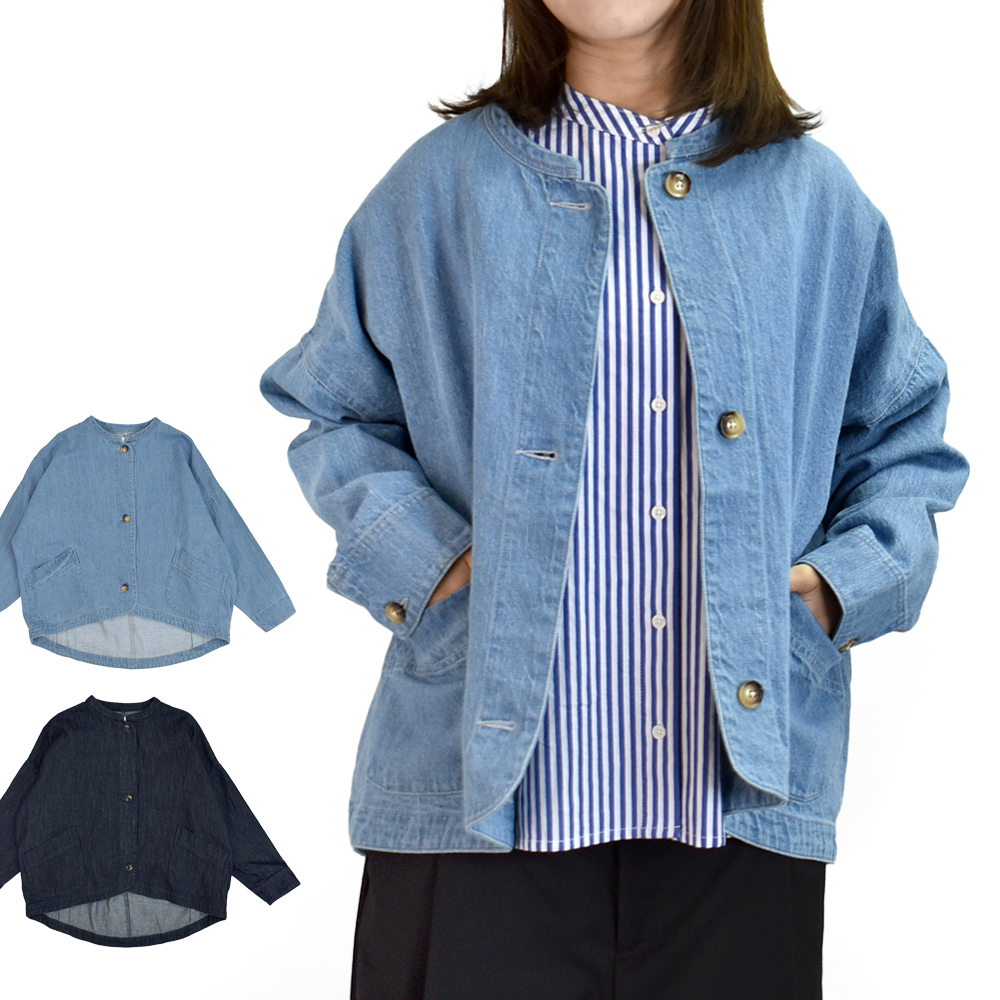 丸みのあるシルエットで女性らしい印象のデニムジャケットです。