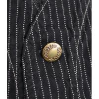 クラシカルなディテールで、胸ポケットは左右比対称で、左胸にはチェンジボタンの付くペン差し付き変形ポケットが、左ポケットはフラップ付きのホームベース型のポケットが付きます。