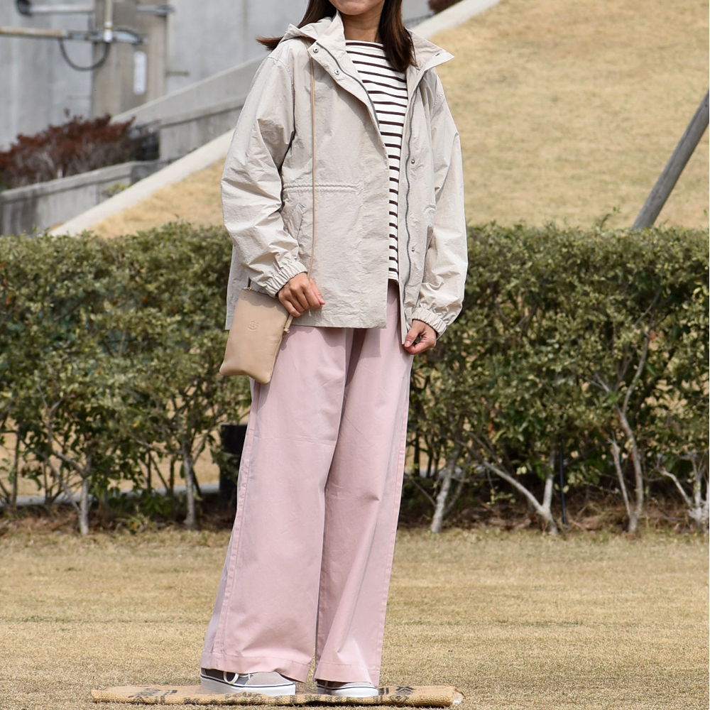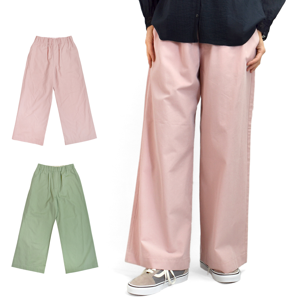 適度なワイドシルエットと春らしいカラーが印象的なパンツ。