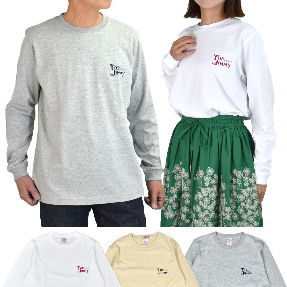 シンプルなデザインの長袖Tシャツに、TOPJIMMYのオリジナルロゴが入ったデザイン。