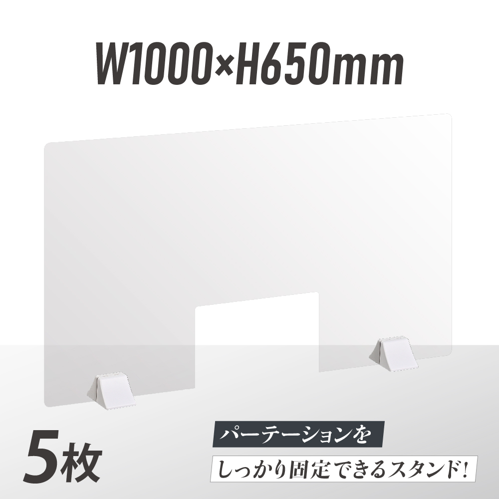 お得な5枚セット 透明 アクリルパーテーション W1000×H650mm W300mm窓付き 仕切り板 卓上 受付 衝立 間仕切り 飲食店 abs-p10065-m30-5set