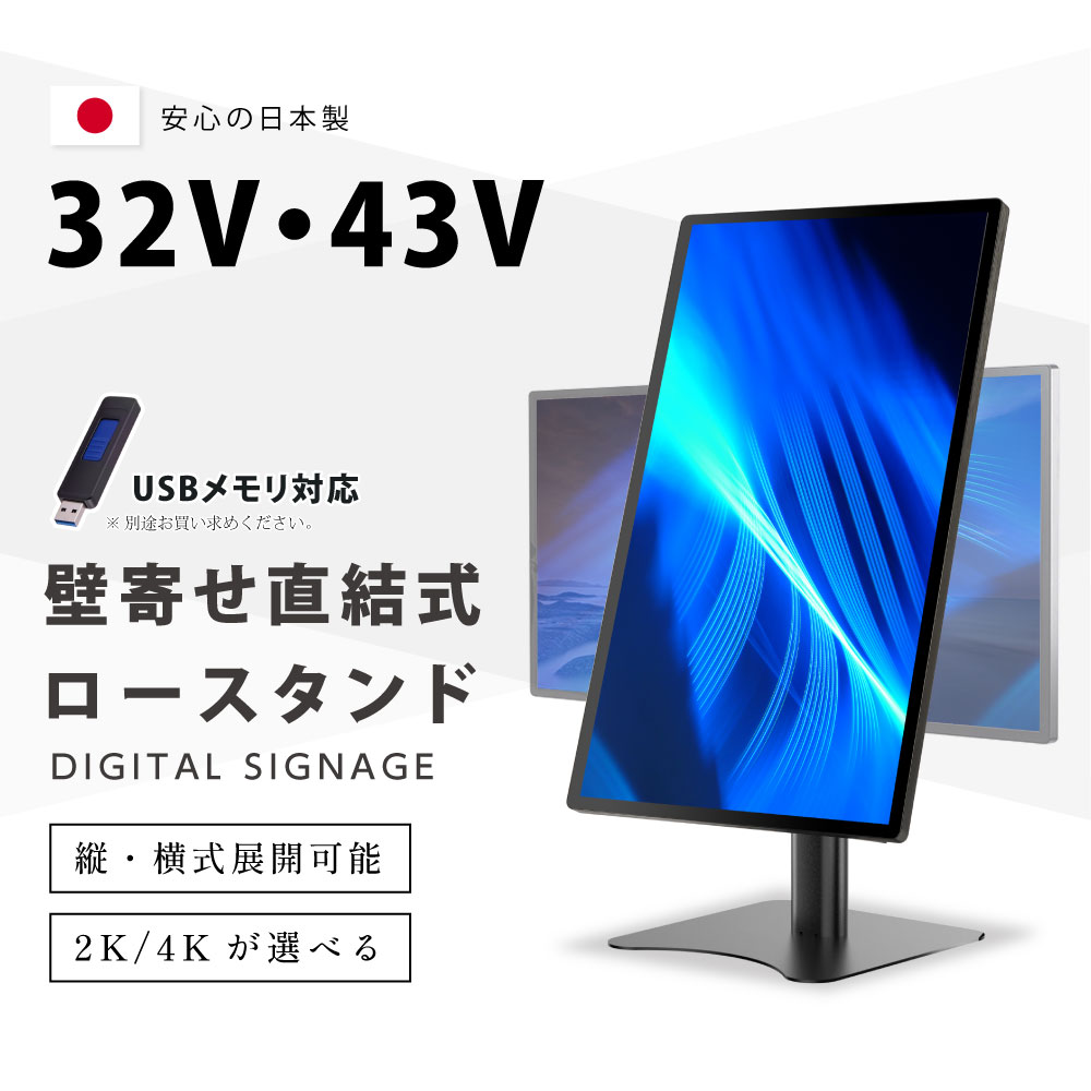 デジタルサイネージ 32/43インチ 垂直型スタンドセット 店舗看板 軽量 コンパクト 縦横自由 ディスプレイ USBメモリー 大画面 dsns-h