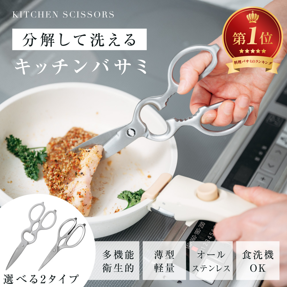 キッチンバサミ オールステンレス キッチンはさみ はさみ 分解して洗える 煮沸消毒 キッチンばさみ 料理はさみ 食洗機可 缶開け 時短調理 一体成型 分解 肉切り