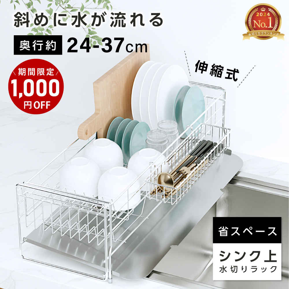 水切りラック シンク上 伸縮式 大容量 水切りかご 調整可能 スリム ステンレス 水切りカゴ キッチンラック 食器 水切ラック 箸置き 省スペース キッチングッズ