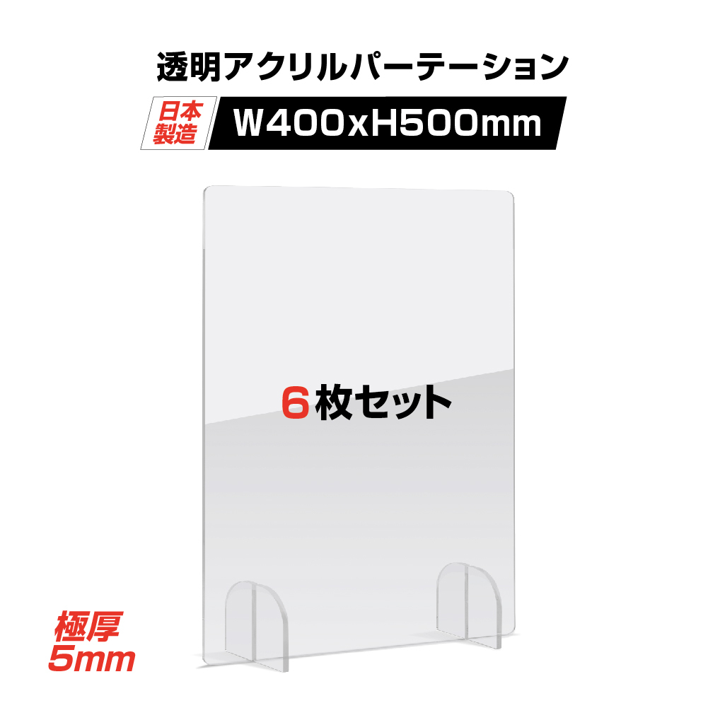 日本製 お得な6枚セット 透明 アクリルパーテーション W400xH500mm 板厚5mm 丸型足スタンド アクリル板 パーテーション 卓上パネル 送料無料 rap5-r4050-6set