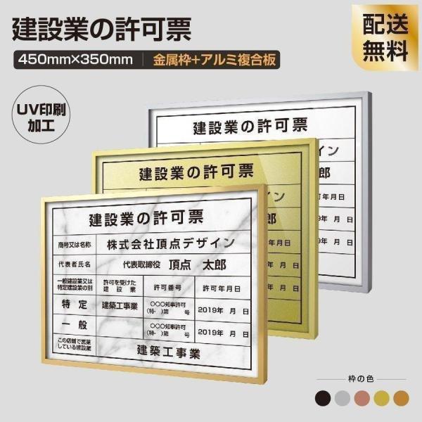 TOP看板 建設業の許可票 事務所看板 看板 W455mm×H355mm 選べるアルミ面板・書体 額縁 UV印刷 法定サイズクリア 宅地 建物 標識 事務所用 sl1035-rb