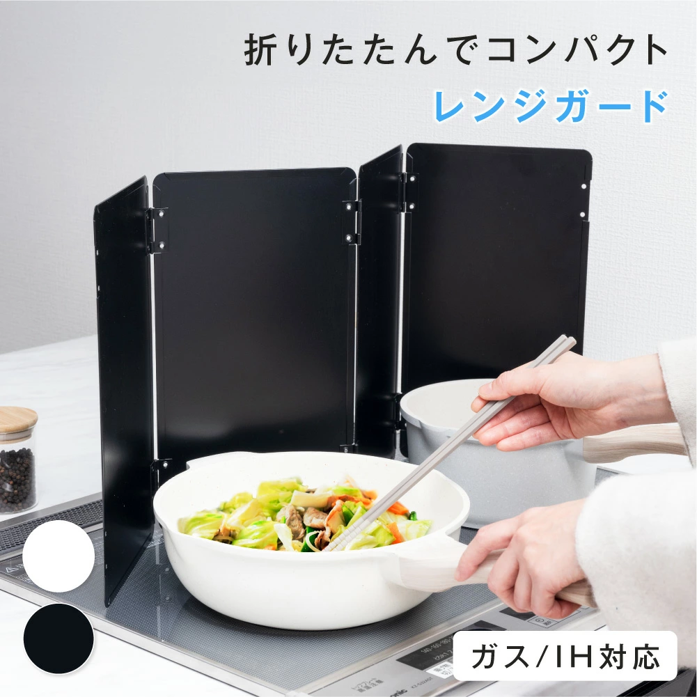 【折りたたんでコンパクト】使った後は、サッと拭いて折りたたんで、コンロ横の狭いスペースにも収納できます。使うときだけ取り出すので、コンロ周りをすっきり使えます。