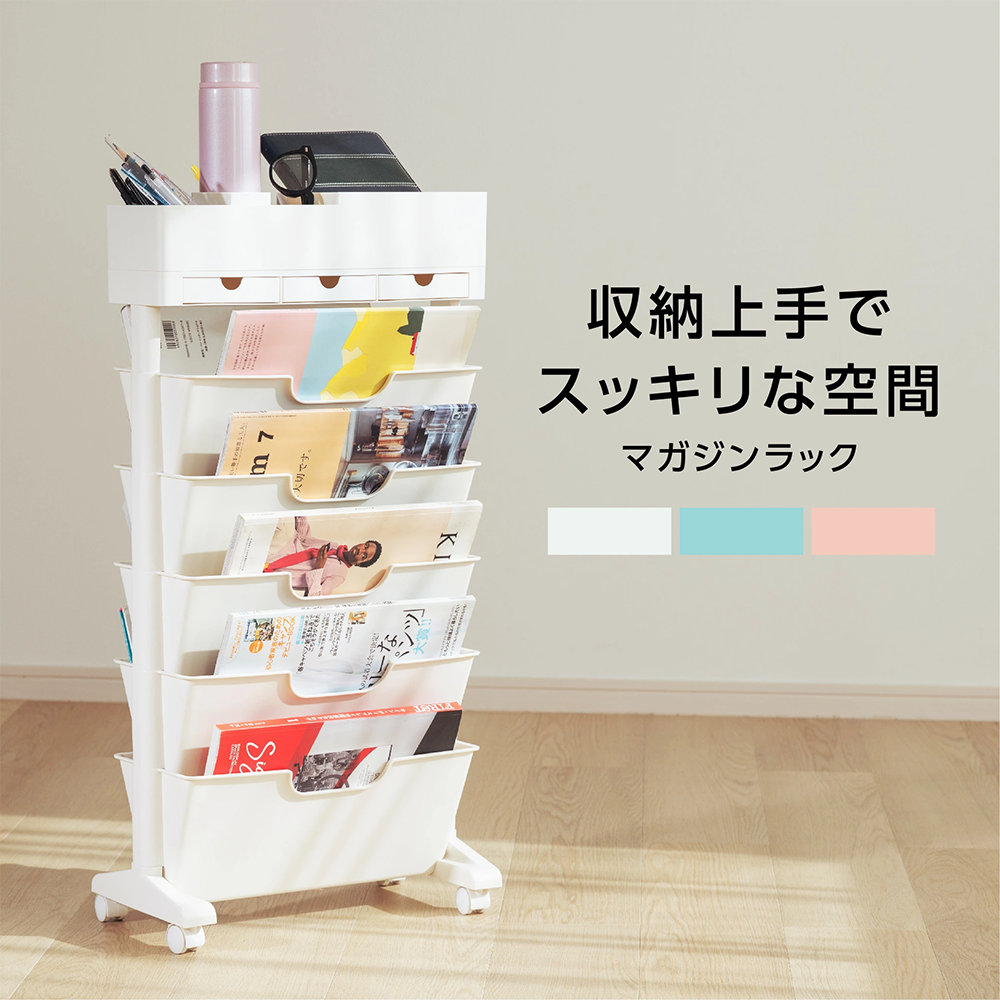 【省スペース】すっきり設置できる幅21cmのスリム設計。ユニットタイプなので、文房具ラックを取り外して卓上使いもできます。出し入れしやすい角度にさ設計され、必要な本や雑誌が一目で分かります。