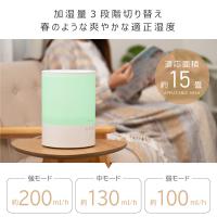 【3段階切り替え・アロマ対応】加湿量3段階切り替え春のような爽やかな適正湿度。水溶性アロマ対応アロマの香り広がるリラックス空間に。お気に入りの香りと心地よい潤いに包まれてお休みください。