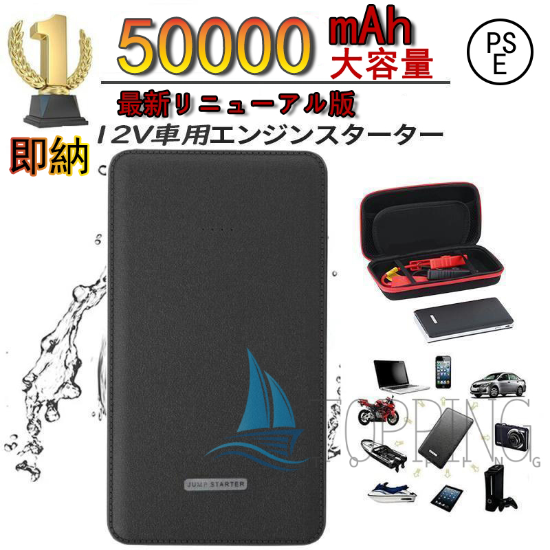 即納新型ジャンプスターター 50000mAh 12ボルトポータブルリチウムジャンプスターター エンジンスターター 緊急ライト モバイルバッテリー 安全保護機能 PSE認証