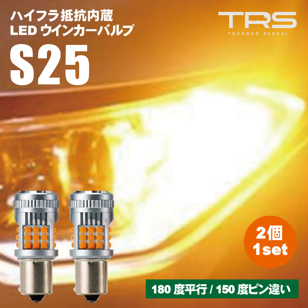 TRS 超爆光 LEDウインカーバルブ アンバー 2個入 12/24V S25 BA15S BAU15S ピン角180度 150度 平行ピン ピン違い 車検対応