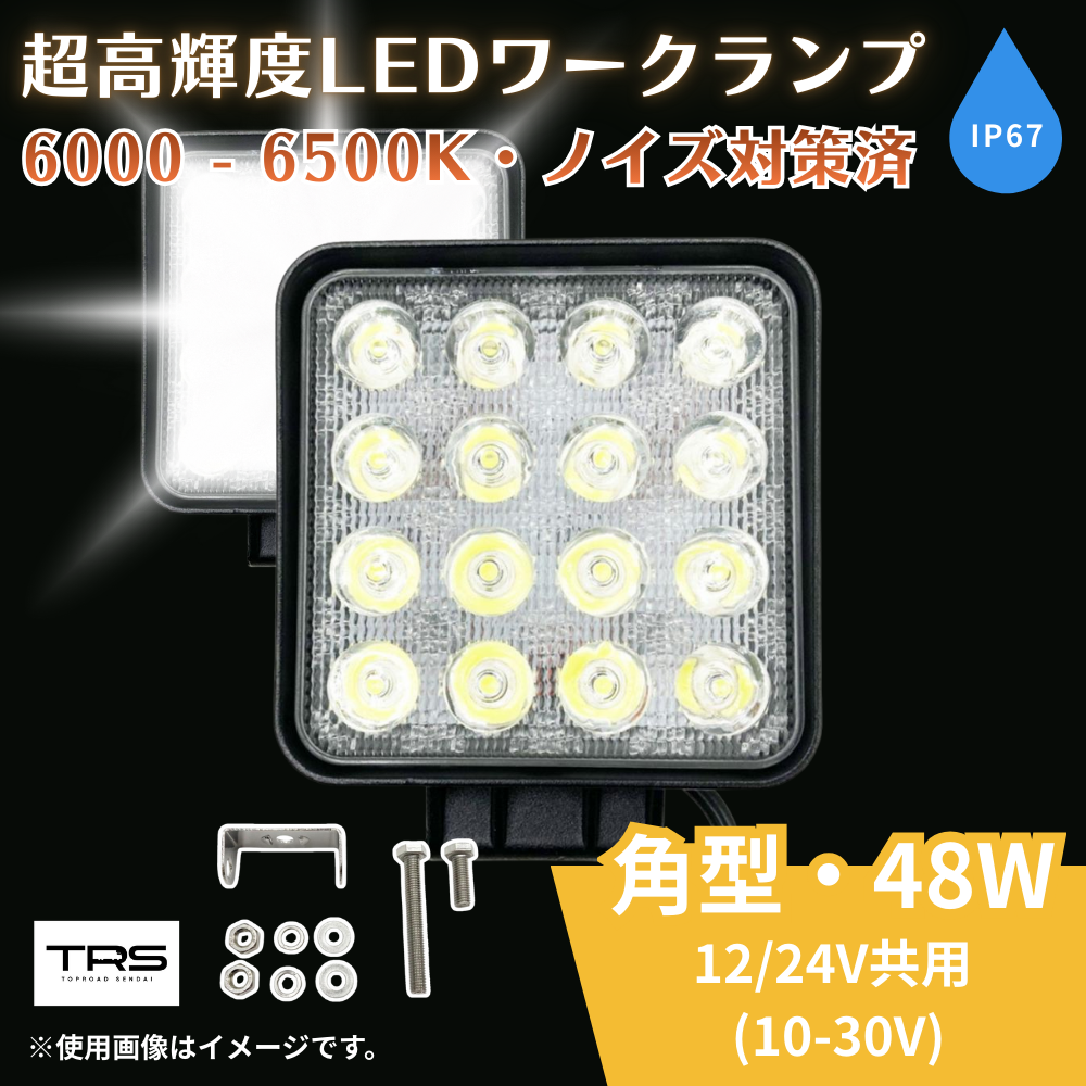 TRS LEDワークランプ 作業灯 白 ホワイト 48W 角型 12/24V共用 防水 IP67 ノイズ対策品 326002