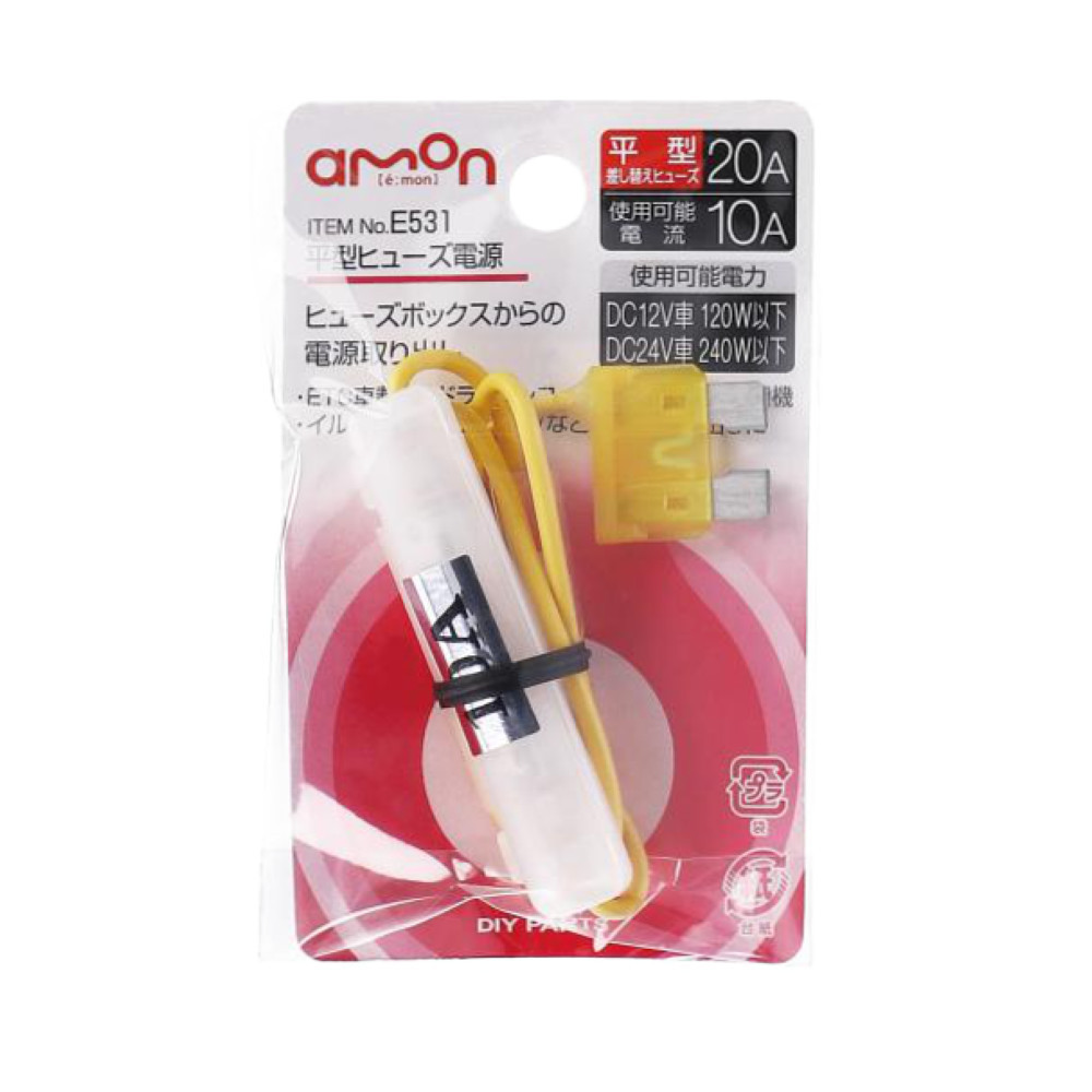 トラック用品 エーモン 平型ヒューズ電源 20Aヒューズ交換用 1個 E531