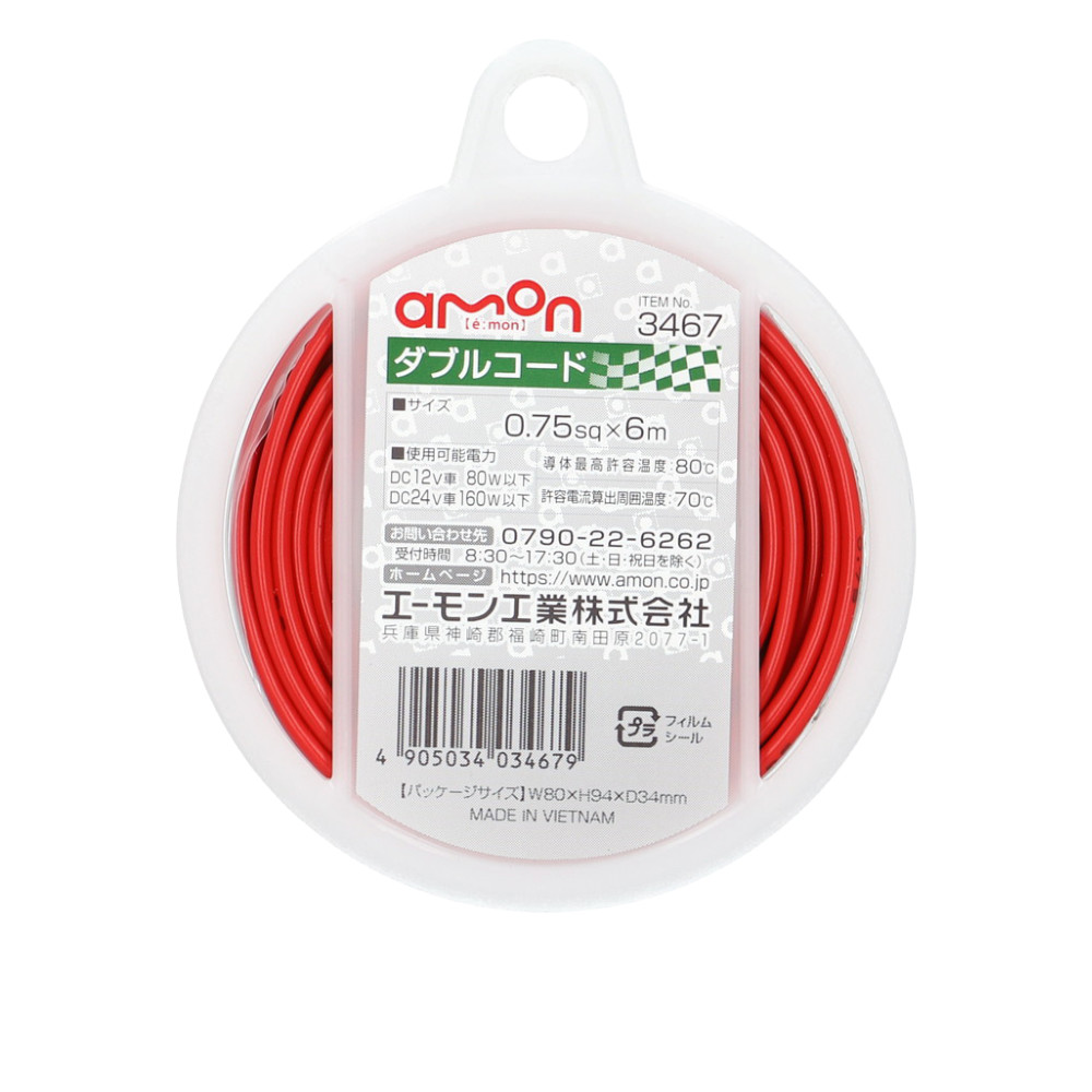 エーモン ダブルコード 配線コード 0.75sq×6m 12V 24V 3467