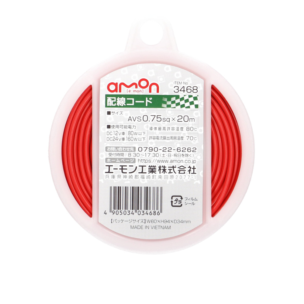 エーモン 配線コード AVS0.75sq×20m 12V 24V 3468
