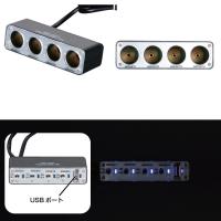 JET トグルスイッチ4連ソケット セパレート 1USB 12/24V共用 [502140] (シガー電源4連 + USBポート付)